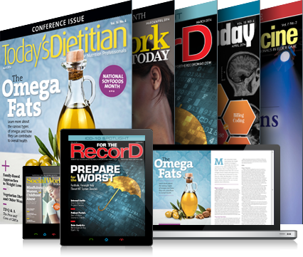 Today's Dietitian, Radiology Today, Today's Geriatric Medicine, Social Work Today, and For The Record, are each leaders in their respective fields.