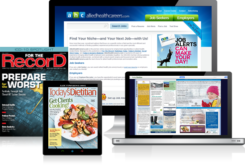 Offering a proven track record of attracting both active and passive job seekers, our magazines and their associated digital media properties connect recruiters with the industry’s most qualified professionals. Our online job boards produce results for recruiters in professions such as health information management, social work, dietetics, geriatrics, radiology and PT/OT/SLP.